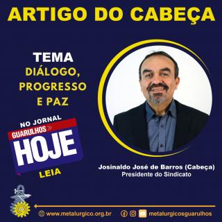 Artigo semanal do nosso presidente Josinaldo José de Barros (Cabeça) publicado no jornal Guarulhos Hoje, quarta, 19, defende o diálogo, como peça fundamental, para a consolidação de projeto de um parque industrial forte, moderno e competitivo.