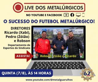 O 28º Campeonato de Futebol dos Metalúrgicos de Guarulhos e Região será tema da live semanal com o nosso vice Ricardo (Xabi) mais os diretores Pedro Pereira (Zóião) e Robson Amadeu, que integram o Departamento de Esportes do Sindicato.