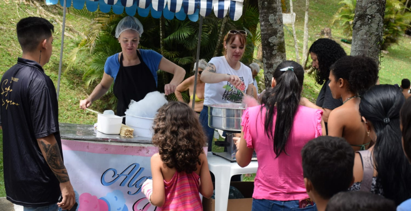 Como toda boa Festa da Criança a nossa teve pipoca, algodão doce e cachorro quente à vontade e distribuição de sorvetes doados pelo vereador Guto Tavares (PDT), que sempre participa dos eventos metalúrgicos. Teve também brinquedos infláveis, instalados na quadra sintética; “big ball”, na prainha e uma série de gincanas na piscina aquecida.