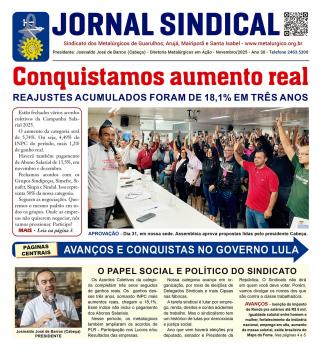 A diretoria do Sindicato já distribuiu nas fábricas o Jornal Sindical. Formato tabloide, com 8 páginas, o Jornal informa o resultado da Campanha Salarial 2025, registra conquistas metalúrgicas durante o ano, mostra funcionamento do nosso Clube durante os feriados deste ano, como também destaca outras ações em prol da categoria.