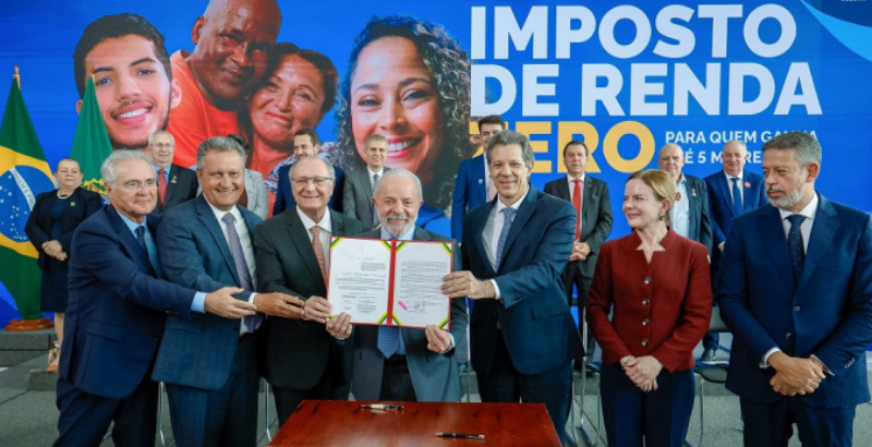 A isenção do Imposto de Renda sobre salários até R$ 5 mil já é lei. Nesta quarta (26), o presidente Lula atendeu o movimento sindical e sancionou a lei que isenta desse Imposto salários até R$ 5 mil. A assinatura ocorreu no Palácio do Planalto, Brasília, com a presença de ministros, Centrais Sindicais, vice-presidente da República e dos dois relatores da matéria (Arthur Lira e Renan Calheiros).