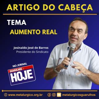 O artigo semanal do nosso presidente, Josinaldo José de Barros (Cabeça), publicado no jornal Guarulhos Hoje, nesta quarta (11), aborda o aumento real no salário do trabalhador e da trabalhadora em nosso País.