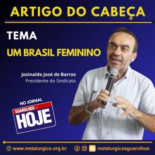 Um Brasil feminino é o título do artigo semanal do nosso presidente Josinaldo José de Barros (Cabeça). O texto foi publicado no jornal Guarulhos Hoje, quarta, dia 11. O dirigente enaltece o papel da mulher no mercado de trabalho e denuncia o feminicídio.